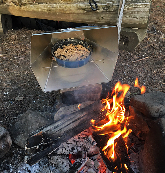 over fire / stove / or bake in reflector over (best choice)