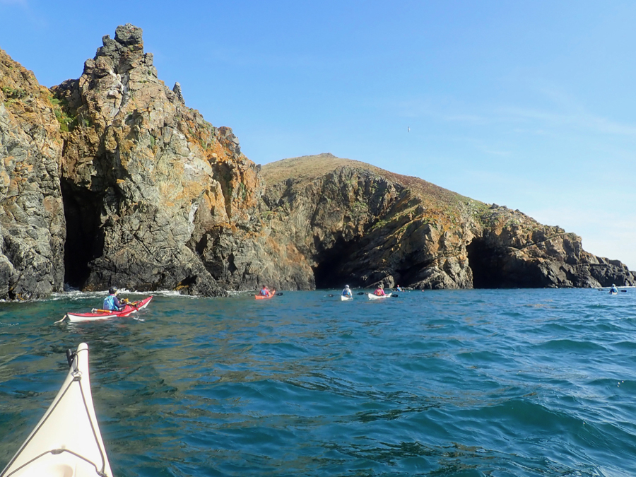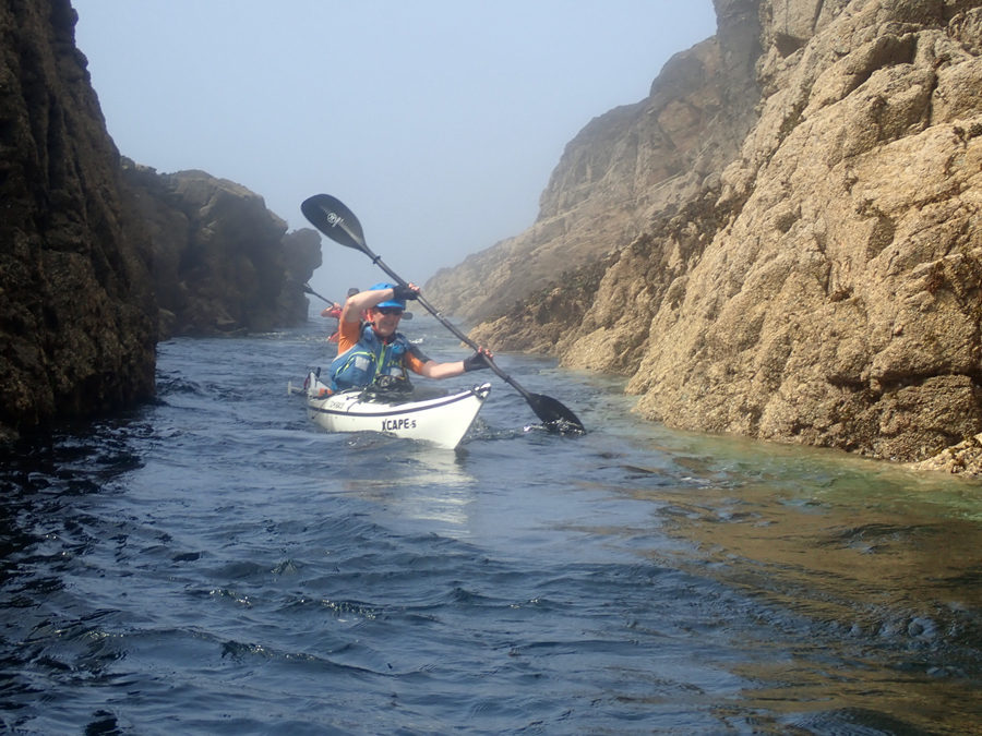 The west coast of Sark provided plenty of amusement and some challenges as thick fog obscured part of the route. The tidal streams were heading south as we threaded our way through the offshore reefs, great entertainment, and 7 hours after we left Dixcart Bay, we were lifting the kayaks back up the beach.