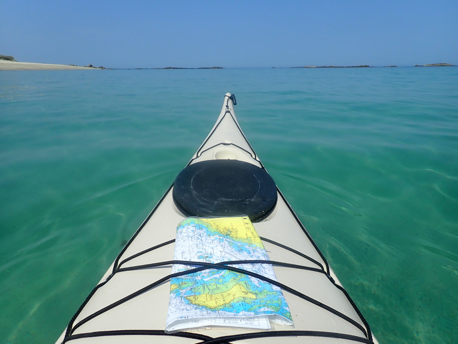 Those days spent working out vectors on a British Canoeing “Open Water Navigation and Tidal Planning Courses”, were going to pay off. If we headed straight towards Alderney we would miss it, so we had to plan for tides reaching 5 knots in strength, and we were only on neap tides! It’s one thing to be able to plan the navigation in a classroom with time and resources on your side. It’s a different situation when you are sitting in a field, with limited resources and a restaurant booking fast approaching.