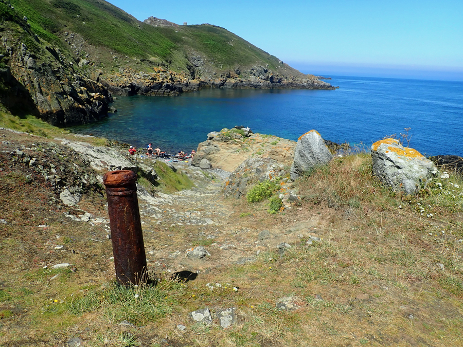 Sark was to be our home for two nights, as the following day we planned to paddle around the Island. Even exploring the bays, the total distance of a circumnavigation is only 8 nautical miles, but it actually took us 7 hours. There is just so much to see, endless caves, stacks and arches, including one long tunnel which has currents reaching speeds of 5 knots pouring through. Creux Harbour was the original sheltered landing, built in the 1860’s, where we stopped off for coffee and cake. With the unseasonable hot weather, being experienced we needed to refresh ourselves by swimming in the crystal-clear waters. We stopped at L’Eperquerie landing, one of the earliest anchorages on the island, where the mooring bollards for small boats, are re-cycled upside-down cannons.
