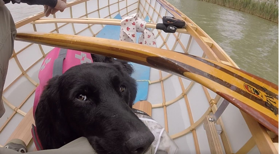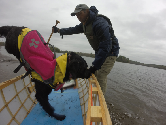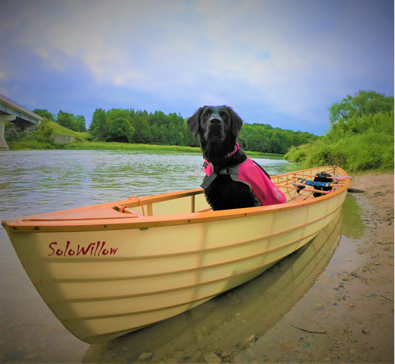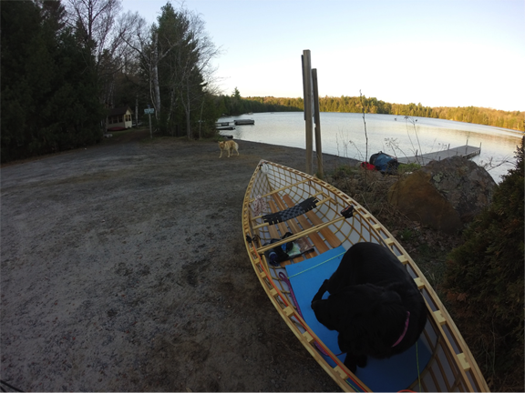 Willow, my timid girl jumping in my canoe because of a friendly dog interrupting our launch.