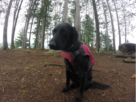 I always enjoyed my solo canoe trips, but at “down” times, I get a bit lonesome. I would see other soloist with dogs and would get a bit envious.  I see some dogs in the bow sitting proudly. I see dogs swimming at the camp sites, and I would see dogs on the portages carrying packs. “I want that!”  My older dogs at the time were never trained to go in a canoe.  When they passed on, it was time for a new best friend.  I put my wife on a mission to get our 2nd new dog. She picked out a female 6 months previously and our 2nd next dog, I told her, was going to be a tripping buddy. She came across a rescue organization that had a 3 month female Golden Retriever/Shepard mixed. She was last to be picked with no markings. Pure black. We picked her up with a full family introduction with her “sister” Jill.