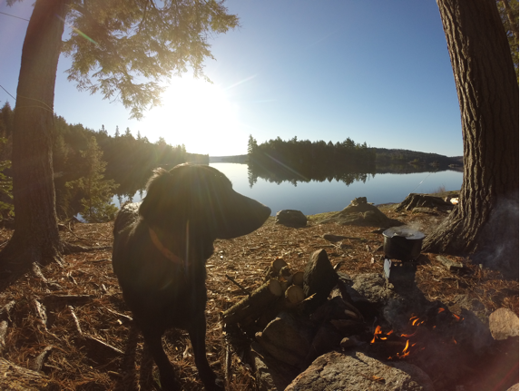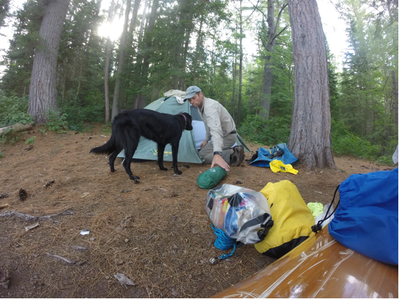 I hate dogs that bark and bark and bark. It’s not nice for other campers to listen to either. She is pretty quiet. Only to bark in camp to warn me of a killer Chipmunk or a stranger on a portage, or perhaps a canoe that is going by our camp that she thinks will invade our paradise.  A quick yell, she will stop in most part. In the canoe, surprisingly, she does not bark at all or seldom.